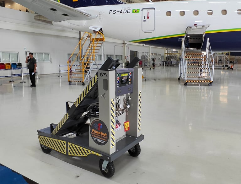 - Desenvolvido para inflar e calibrar pneus de aeronaves de grande ou pequeno volume de ar conta com válvulas de alta vazão e alta pressão atingindo até 900 psi.